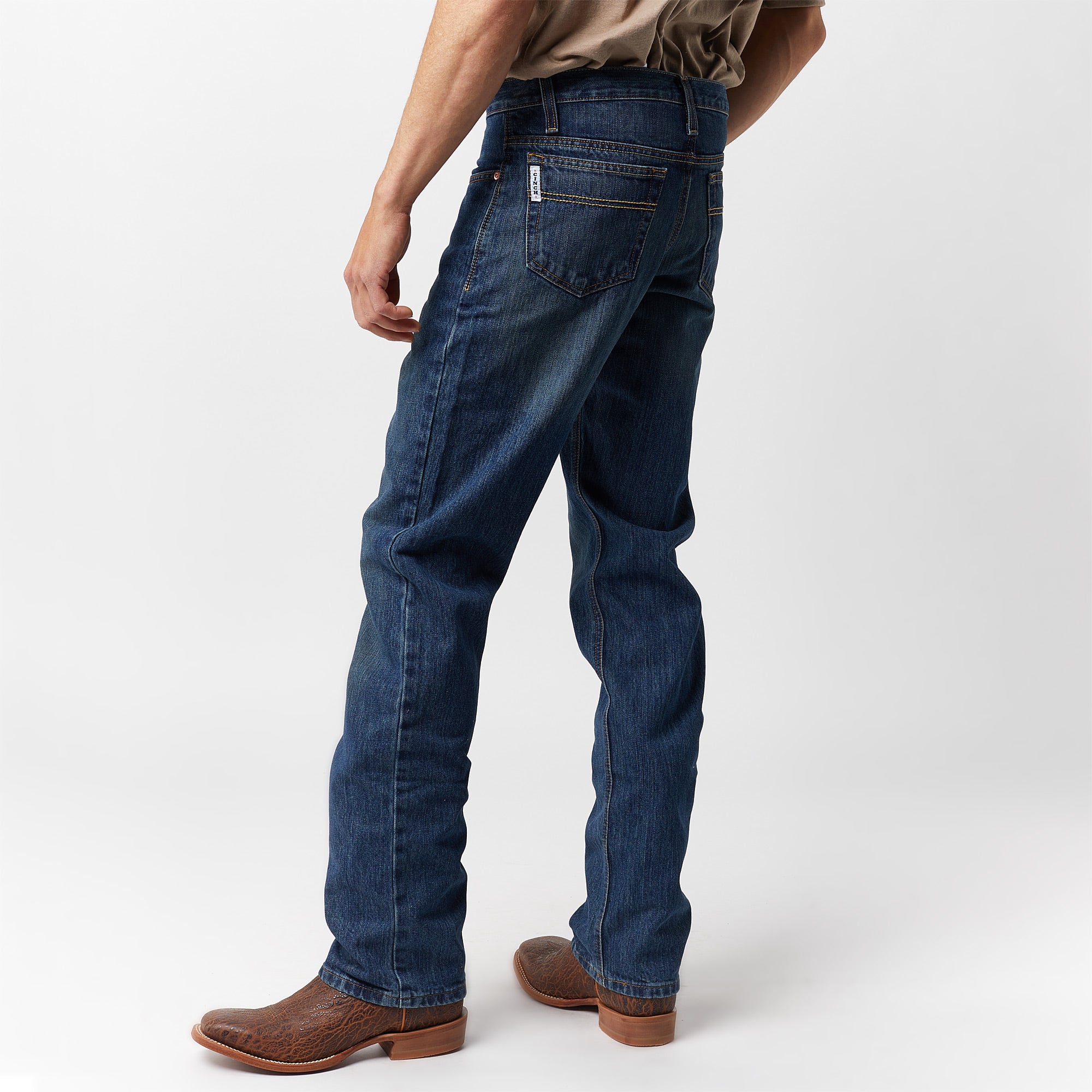 Men's Cinch White Label Jeans - Sheplers Cinch Jeans White Label Relaxed Fit - Tall, Midstone Cinch ® Men's White Label Fire Resistant Work Bootcut Jeans $85.00 Original Price $10.00 Sale Savings $75.00 Cinch White Label Stone Tint Relax Fit Jeans MB92834019 WHITE LABEL: Mid Rise, Relaxed, Straight Leg One of the best-selling Cinch White Label jeans and features a mid rise and relaxed waist, hip, thigh and knee with a straight leg. Dark stonewash, Hand sanding, 14.25 oz. denim. CINCH jeans are tough and durable for the rodeo arena or life on the ranch, yet fashionable enough for a night on the town!