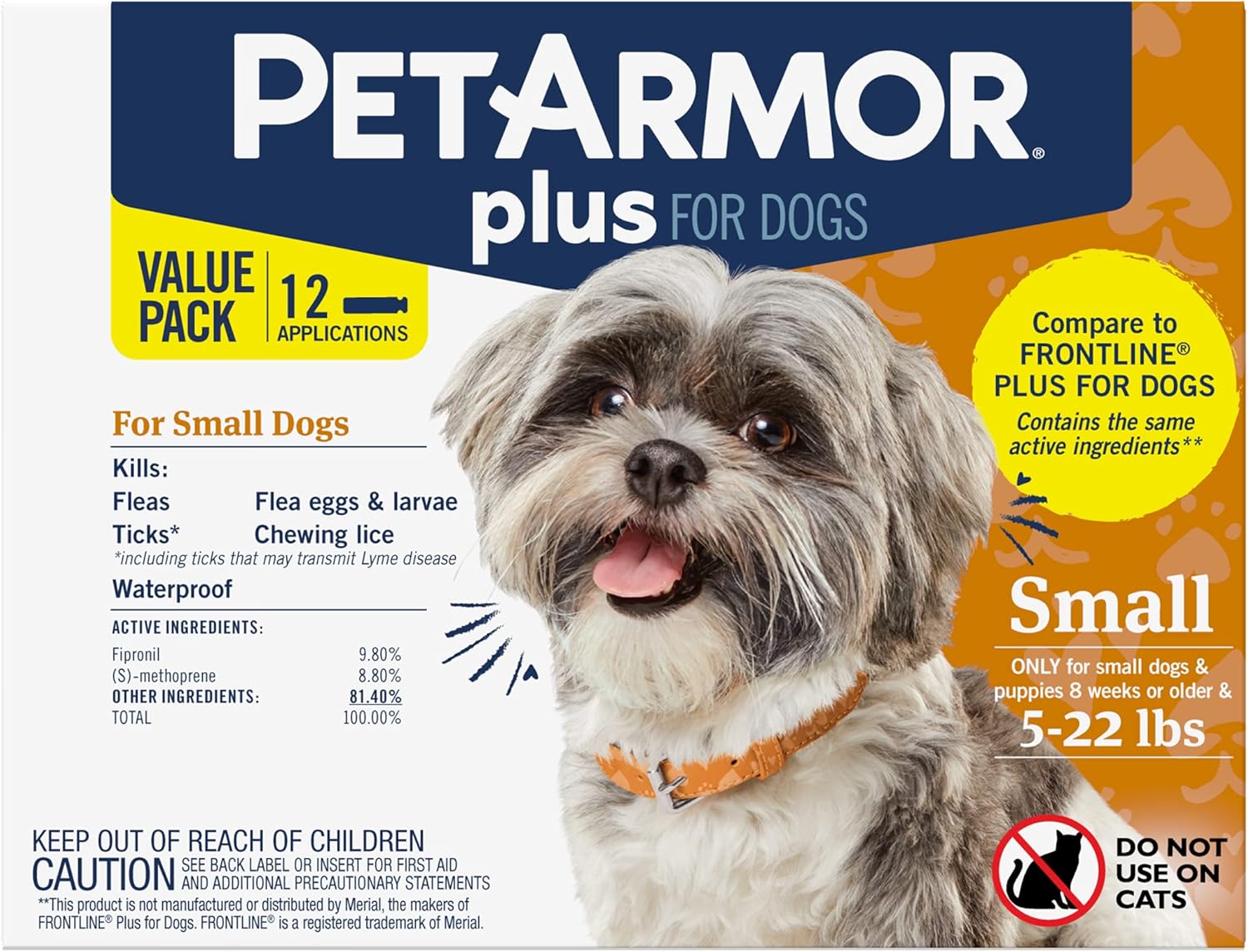 › frontline-plus-flea-tick-spot › dpFrontline Plus Flea & Tick Spot Treatment for Small Dogs, 5 ... FRONTLINE Plus is the #1 name in flea and tick protection.* It’s formulated with two active ingredients that kill fleas and ticks and prevent new flea infestations from developing. FRONTLINE Plus is waterproof 24 hours after application, lasts for a full 30 days and has formulations available for dogs and cats.