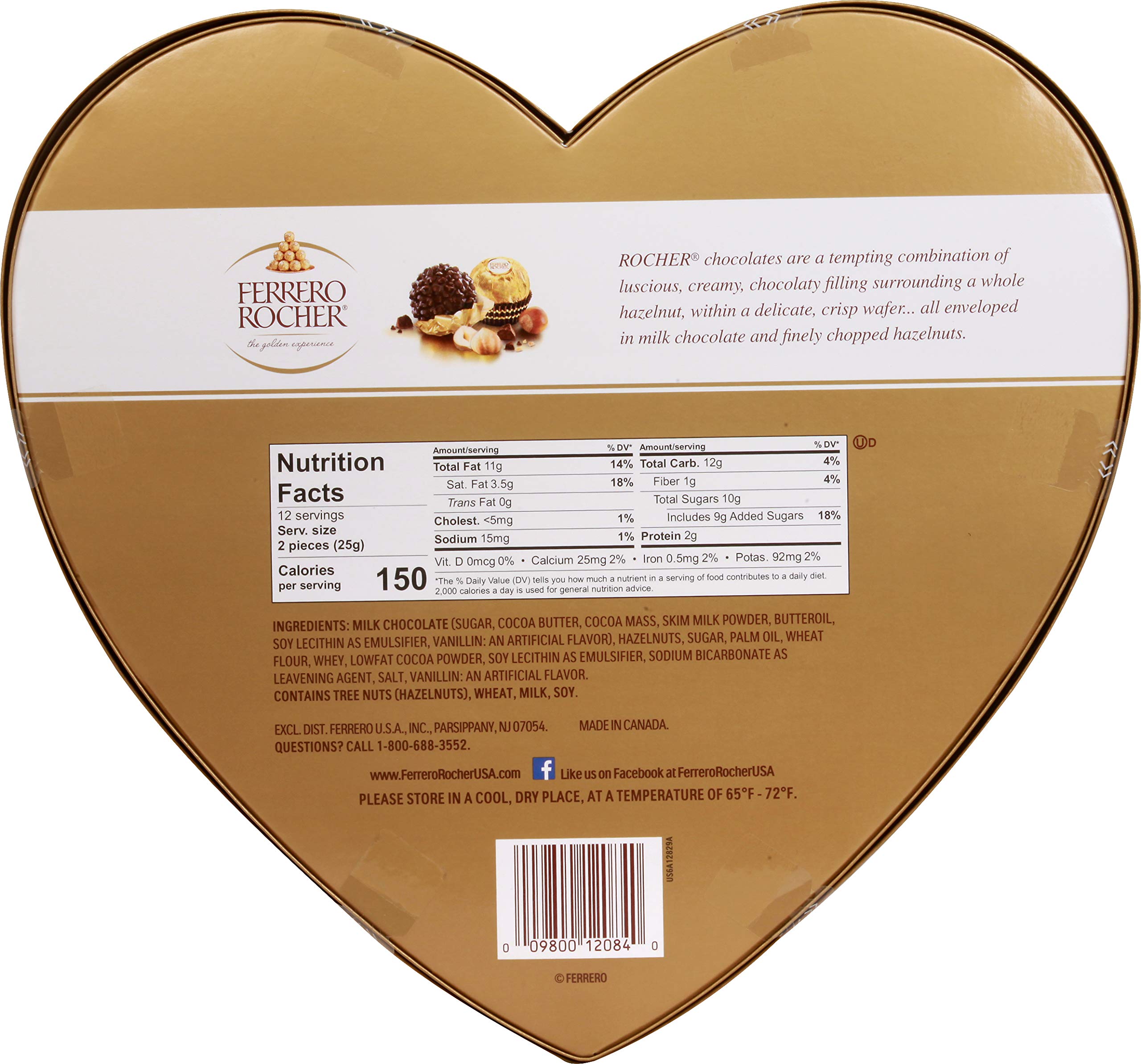 Ferrero Rocher Fine Hazelnut Milk Chocolate, 3 Count, Individually ... Today Buy Ferrero Rocher Fine Hazelnut Milk Chocolate, 3 Count, Individually Wrapped Chocolate Candy Gifts, 1.3 oz at Walmart.com ... Calories per gram: Fat 9 • Carbohydrate 4 • Protein 4 . Product details. ... Ferrero Rocher Hazelnut Chocolates - 48 Count, 21.1 Ounce. Add. $28.99. current price $28.99. Calories in Ferrero Rocher, Hazelnut Chocolate Ball | CalorieKing How many calories in Ferrero Rocher, Hazelnut Chocolate Ball 73 Calories Quantity piece (0.4 oz) Serving Add To Compare 0/8 Nutrition Facts Calorie Burn Time How long would it take to burn off 73 Calories of Ferrero Rocher, Hazelnut Chocolate Ball? Swimming 6 minutes Jogging 8 minutes Cycling 11 minutes Walking 20 minutes
