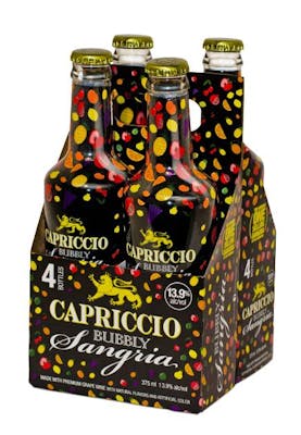 Capriccio Watermelon Sangria (4PK 375 ML) | Fruit | BevMo Capriccio Watermelon Sangria (4PK 375 ML) Capriccio Watermelon Sangria is a fruity wine that is 13.9 percent alcohol by volume. With every taste of this wine, you will get flavors of pomegranate, grapes, pineapples, and oranges.