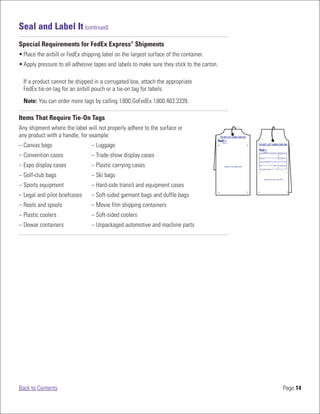 PDF DRY ICE - FedEx labels, documentation and none are placed on the bottom of the package. FedEx branded packaging (including brown boxes) not used. [5.0.2.13.4; FX-06] Y N 11. Markings and label(s) meeting IATA specifications, correctly applied (not obscured or covering required markings, not folded or wrapped on more than one face of package);