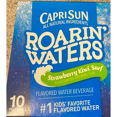 Capri Sun Roarin' Waters Flavored Water Beverage Strawberry Kiwi - 10 pk 30 calories per pouch. USDA Certified Organic 50% less sugar than average leading fruit juices (Per 12 fl oz, this product 15 g total sugar, leading average fruit juices 40 g total sugar) see back panel. ... A Wave of Deliciousness: Capri Sun Roarin' Waters is the perfect combination of refreshing, hydrating water and the epic fruit flavors ...