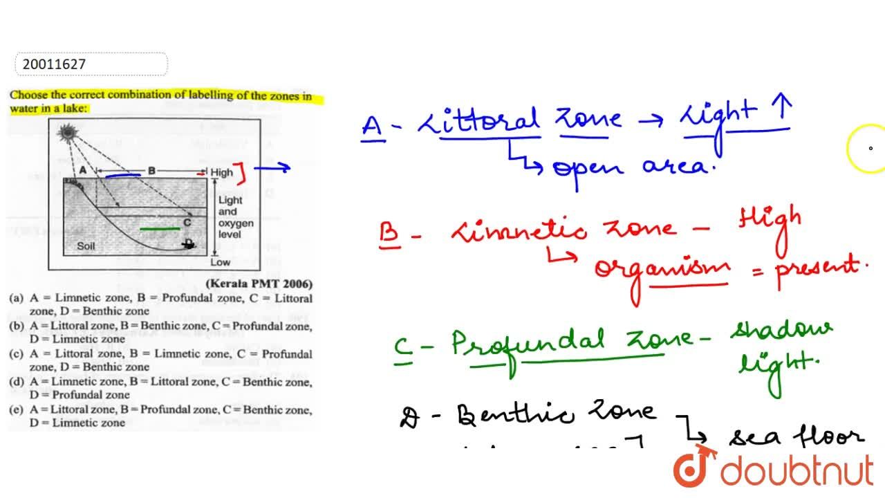 Bio 211 Exam 5 Key Concepts Flashcards | Quizlet Diagram a lake in cross section. Label the littoral, limnetic, benthic, photic and aphotic zones. Describe the adaptations needed for organisms to live in each zone. Diagram an ocean in cross section. Label the intertidal, neritic, oceanic, photic and aphotic zones as well as the continental shelf. 1. Draw a lake and label the photic, aphotic, littoral, limnetic, and ... The correct answer is attached as an image and explained below. Explanation: There are different zones found in a lake ecosystem or biome that are the photic, aphotic, littoral, limnetic, and benthic zones. The littoral zone is near the shore in a water body such as a lake. Sunlight penetrates this zone and helps aquatic plants present. 1. Draw a lake and label the photic, aphotic, littoral, limnetic, and ... Draw a lake and label the photic, aphotic, littoral, limnetic, and benthic zones. - the answers to ihomeworkhelpers.com. Subject. English; History; Mathematics; Biology; Spanish; Chemistry; Business; ... aphotic, littoral, limnetic, and benthic zones. Answers: 3 Show answers Another question on Biology. Biology, 21.06.2019 16:00. The health ...