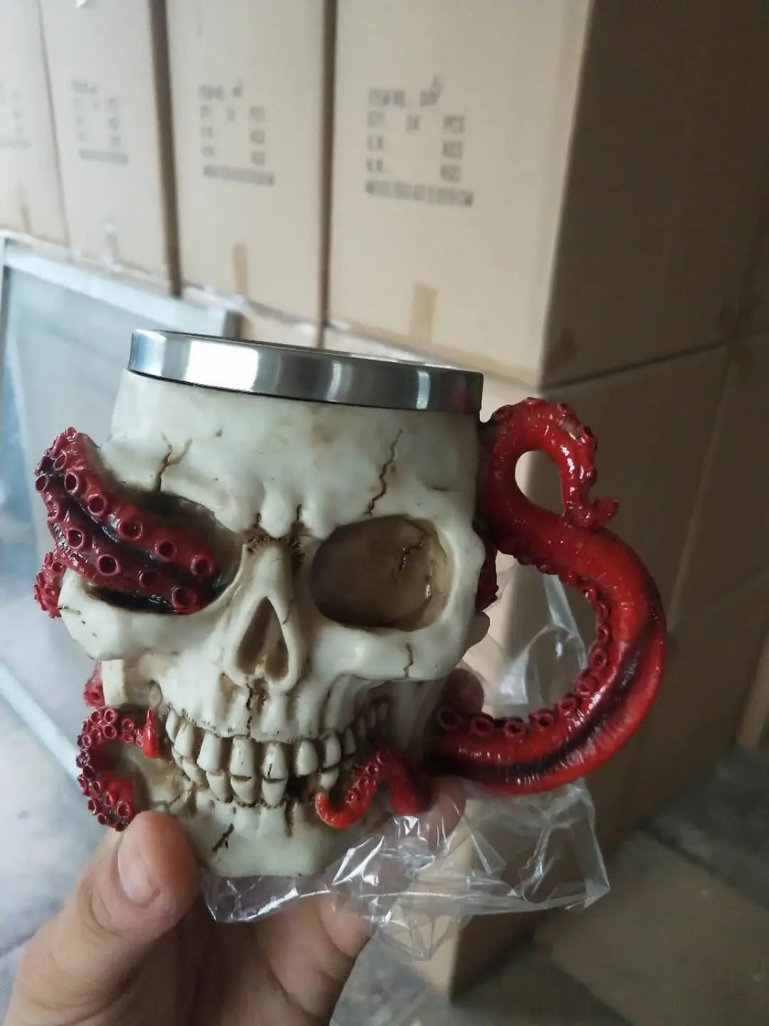 Item List: P-T - Monsters in Motion DOOM; GALAGA; GOD OF WAR; HALO; HEROES OF THE STORM; KILLER INSTINCT; KILLZONE; MASS EFFECT; MEGA MAN; METAL GEAR; MONSTER HUNTER; MORTAL KOMBAT; PAC-MAN; PORTAL; PROTOTYPE; ... Here is a highly detailed hand painted Steampunk Skull Mug for you to drink motor oil out of or add to your collection.... $19.99 Add: Displaying 21 to 30 (of 40 ... Skull Dice Mug with Horns for RPGs | SkullSplitter Dice Here's what's included: 1 X Skull Mug with Horns 1 X Random Metal D20 1 X Velvet Bag with SkullSplitter Logo Filled with approximately 80 random plastic dice Additional Info: Measures approximately 19cm x 13cm x 13.5cm Capacity is approximately 13oz Two horns on the side provide easy grip Interior is made of stainless steel The exterior is made ...