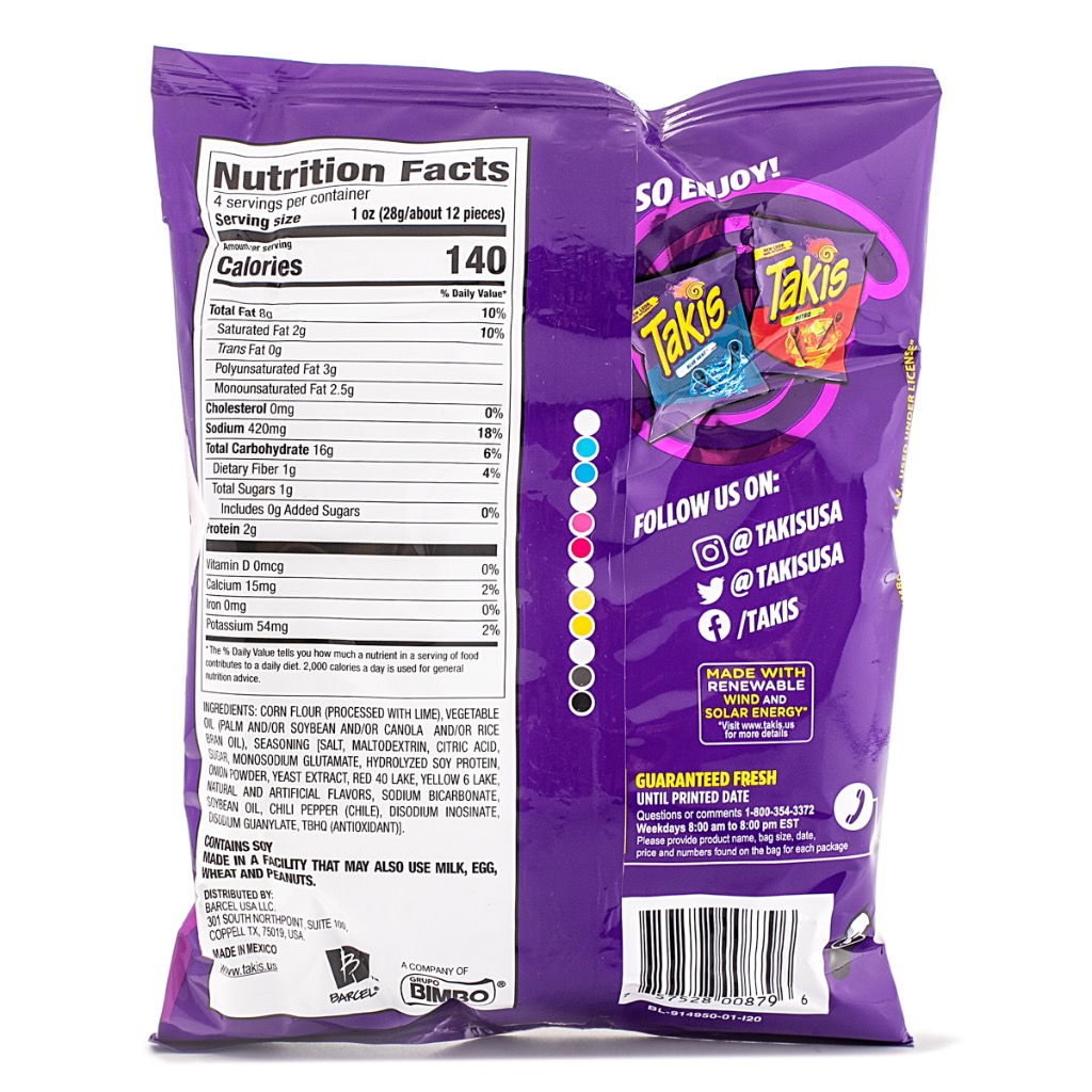 Homepage | Takis Takis® Dragon Sweet Chili™ 90g See details . Takis® Fuego™ See details . Takis® Nacho Xplosion™ See details . Takis® Nacho Xplosion™ See details . Takis® Fuego ™ See details . Pages 7 results. Title. Apply Products. See more Products. Newsletter Subscription. See more ... Takis Blue Heat Rolled Tortilla Chips, Hot Chili Pepper Artificially ... Takis Mini Fuego and Nitro Rolled Tortilla Chips, Hot Chili Pepper and Lime and Habanero and Lime Artificially Flavored, 25 Individual Snack Packs, 1.23 Ounces Each, Net Weight of 30.75 Ounces 3,178 Takis Nutrition Label : Lake Norman Real Estate Takis Nutrition Label In other words, ... The Empress Tianmei has come after him, I will take the last anti-space journey to send you out of weight loss food plan danger, and then turn back to fight with the Empress Tianmei, and drag them as far as possible. The roof is full of different cars, The two hid in one of the cars, Shannariva said ... Takis Fuego Family Size Party Pack, 9.9 Oz (Pack of 3) Takis Fuego Hot Chili Pepper & Lime Tortilla Chips that is delicious and delicious for lovers of spicy flavors, it can be served as snacks or with food and burgers. Takis Fuego Hot Chili Pepper & Lime Tortilla Chips is a distinctive spicy taste that is preferred by young and old, as it is an airtight bag that you can take anywhere.