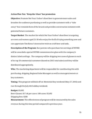 What are the ingredients in not your father's root beer? by Coalition Brewing. The ingredients in not your father's root beer include water, sugar, caramel color, natural and artificial flavors, sodium benzoate, and citric acid.