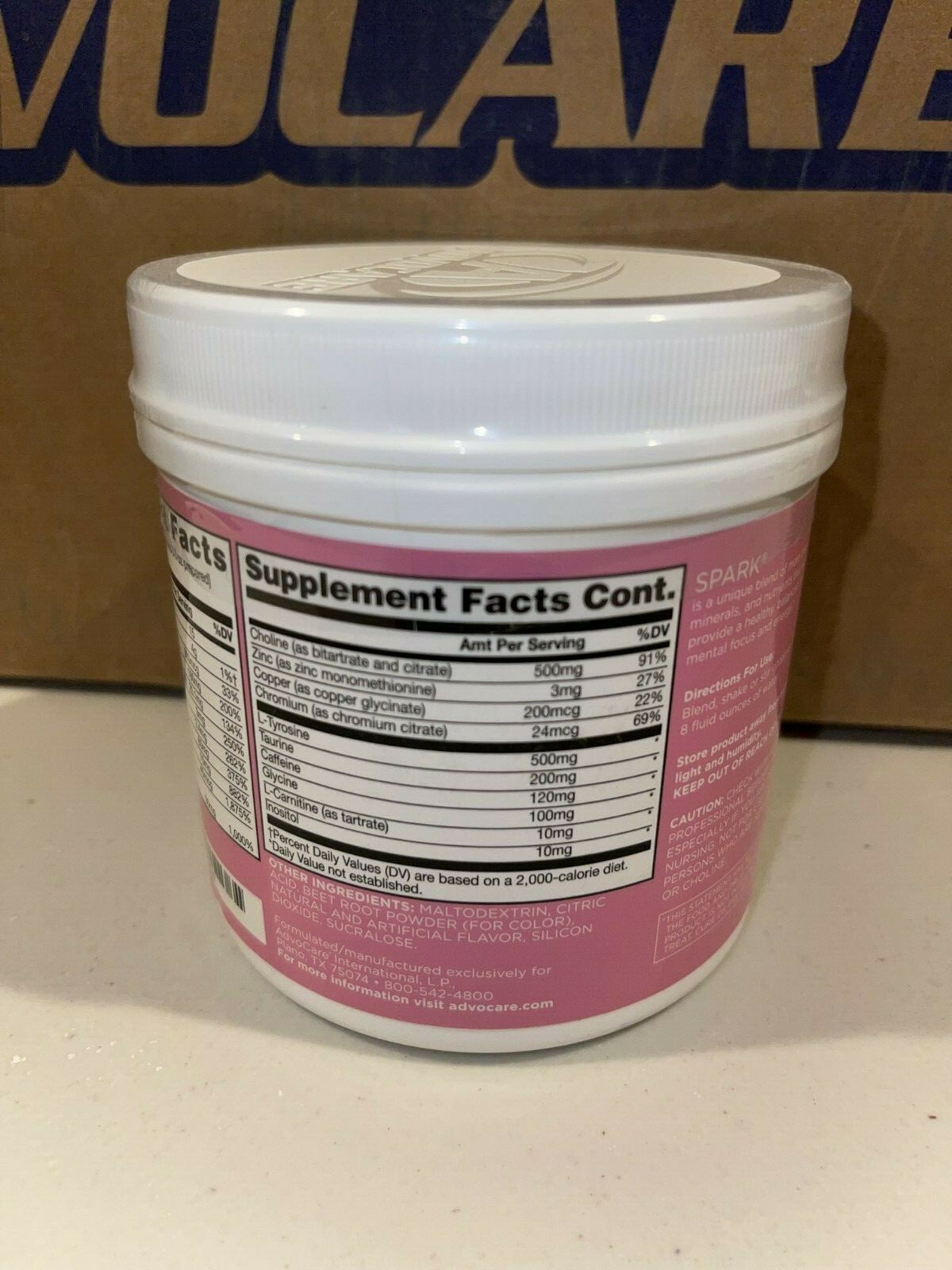 AdvoCare Spark Energy Nutrition Facts (Analysis) It contains 120mg caffeine, 15 calories, and no sugar. It's also rich in vitamins, minerals, and amino acids that will guarantee an energy boost without compromising your overall health. I'll thoroughly analyze the nutritional information, ingredients, benefits, and how Advocare Spark Energy works through this article.