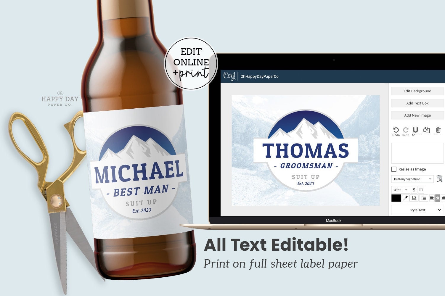 Free "Will You Be My Groomsman?" Beer Labels - dashleigh Will You Be My Groomsman? Beer Label for Canva 4x3 in. Grey Watercolor Access this Free Canva Template For Microsoft Word Download Beer Template File This Microsoft word file contains everything you need to create beautiful beer/groomsman labels. Each file includes shapes that can be edited in Word to include your own text and color themes.