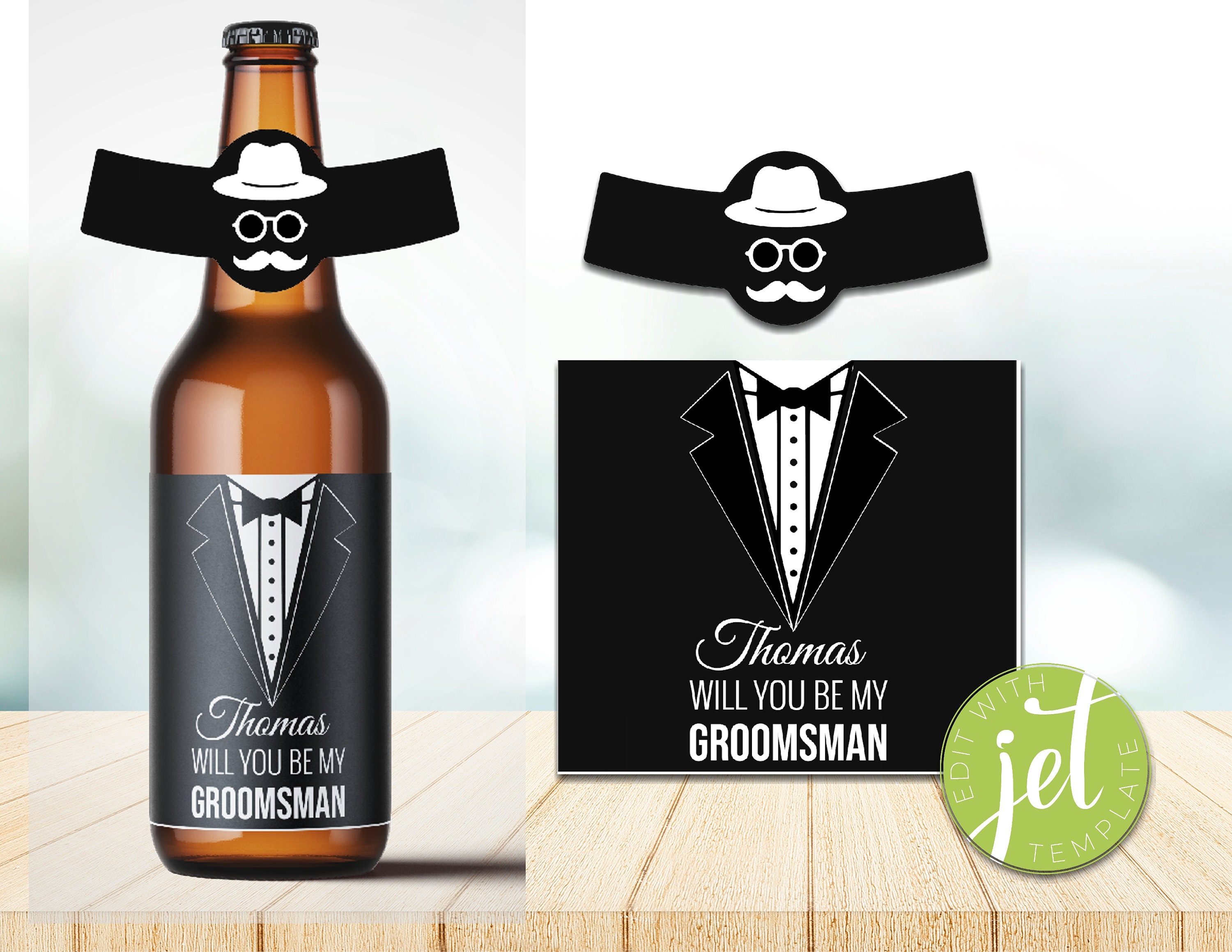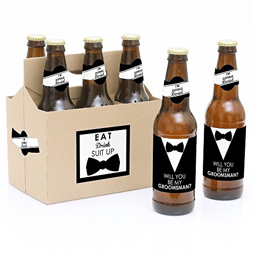 Suit Up - Will You Be My Groomsman Decorations for Men - 6 Beer Bottle ... Carefully peel one Will You Be My Groomsman sticker label from the backing and adhere to a bottle, starting at the edge and rolling to the opposite edge. Add the bottle neck label and place the completed bottle into the kraft paper carrier. Complete the beer gift kit by adding the remaining 4 stickers to the sides of the six-pack carrier.