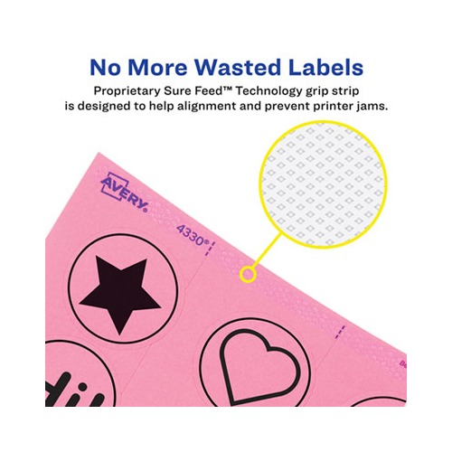 Avery Printable Round Labels with Sure Feed, 1-2/3 Inch Diameter ... This item: Avery Printable Round Labels with Sure Feed, 1-2/3 Inch Diameter, Assorted Bright Colors, 240 Customizable Labels (04330) $16.49 Avery Matte White Round Labels, Sure Feed Technology, Permanent Adhesive, 1-1/2", 400 Labels (8293) $15.95 ($0.04/Count)