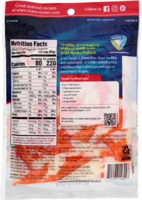 Imitation crab calories. Is Imitation Crab Good for Your Health? - WebMD Real crab has significantly higher nutrient levels than imitation crab. For example, imitation crab derives most of its calories from added carbs. The calories in an Alaskan king crab... What to know about eating imitation crab - Medical News Today May 18, 2021 · One 85 g serving of imitation crab contains the following nutrients: Calories: 80.8 Protein: 6.48 g Fat: 0.391 g Carbohydrate: 12.8 g Fiber: 0.425 g Sodium While sodium is important for the... Imitation Crab Meat Nutrition Facts - Eat This Much For a Serving Size of 0.5 cup ( 85 g) How many calories are in Imitation Crab Meat? Amount of calories in Imitation Crab Meat: Calories 105. Calories from Fat 9 ( 8.6 %) % Daily Value *. How much fat is in Imitation Crab Meat? Amount of fat in Imitation Crab Meat: Total Fat 1g. What Is Imitation Crab? - Imitation Crab vs Real Crab Aug 12, 2022 · Real crab is also significantly higher in nutritional value, as it contains omega-3 fatty acids and vitamins and minerals like B12, zinc, and selenium—all of which tends to be washed away during surimi processing. How does imitation crab taste? Imitation crab is meant to taste like cooked fresh crab, in both texture and flavor.