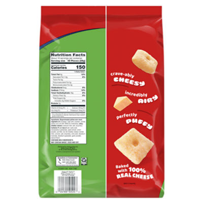 Nutrition Facts: White Cheddar - Cheez-It HQ Cheez-It® 100% official merch & products for 100% Real Cheese Fans. Now available online with free shipping over $25. Calories in Cheez-It Cheez-It Puff'D and Nutrition Facts There are 150 calories in 40 pieces (28 g) of Cheez-It Cheez-It Puff'D. Calorie breakdown: 53% fat, 42% carbs, 5% protein. Related Snacks from Cheez-It: Snap'd Cheez-It Reduced Fat Crackers White Cheddar Snack Crackers Puff'D Snap'D Barbecue More Products from Cheez-It: Puff'D Snack Mix Crackers view all cheez-it products Other Types of Snacks: Cheez-It® Original | Cheez-It® Contains 2% or less of salt, paprika, yeast, paprika extract color, soy lecithin. For full nutrition information and other package sizes, visit Smartlabel: Select pack size: View SmartLabel ★★★★★ ★★★★★ 4.8 790 Reviews 747 out of 776 (96%) reviewers recommend this product ϙ Reviews Write a review Rating Snapshot Select a row below to filter reviews. › food › cheez-itsCalories in Cheez Its - Nutritionix Nutrition Facts Cheez Its Serving Size: crackers (30g ) Amount Per Serving Calories 150 Calories from Fat 72 % Daily Value* Total Fat 8g 12 % Saturated Fat 1.5g 8 % Trans Fat 0g Polyunsaturated Fat 4 g Monounsaturated Fat 2 g Cholesterol 0mg 0 % Sodium 230mg 10 % Potassium 30mg 1 % Total Carbohydrates 17g 6 % Dietary Fiber 0.5g 2 % Sugars 0g