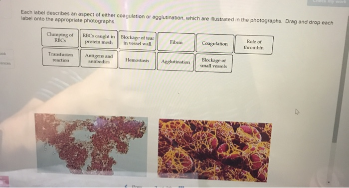 Drag each of the labels into the appropriate position to indicate the ... Drag each of the labels into the appropriate position to indicate the components of coagulation. Extrinsic Pathway = damage to the perivascular tissue, thromboplastin release Intrinsic pathway = Factor XII, Factor IX Common PAthway= Factor X accumulation, prothrombin activator, fibrinogen breakdown, thrombin increase?, Fibrin increase? 2 Blood Analysis APR Module 9 Flashcards | Quizlet Drag each of the labels into the appropriate position to indicate whether the item is classified as a formed element or a component of plasma Plasma: glucose, chloride, antibodies, gamma globulins, albumin, fibrinogen, hormones Formed elements: red blood cells, erythrocytes, leukocytes, white blood cells, platelets, monocytes, neutrophils